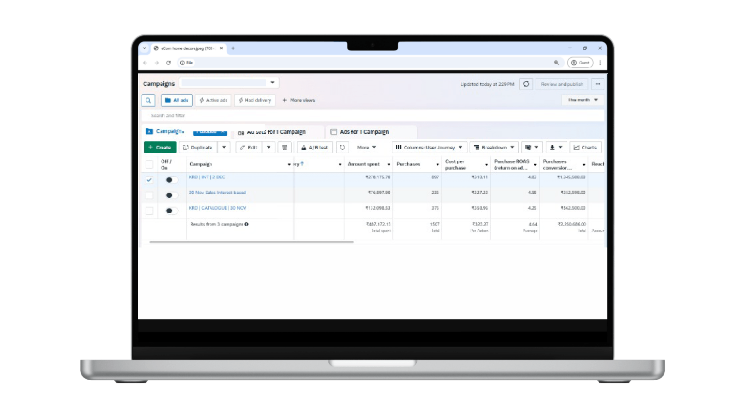 - Achieved 1,507 purchases for a home decor e-commerce brand.
